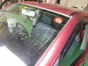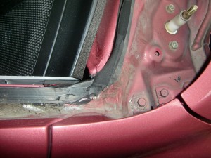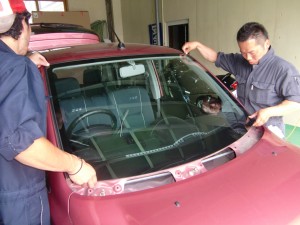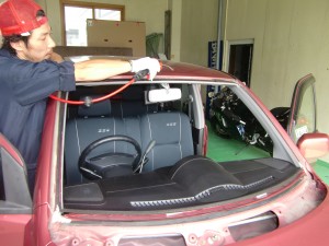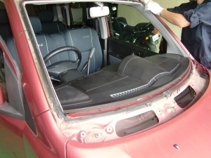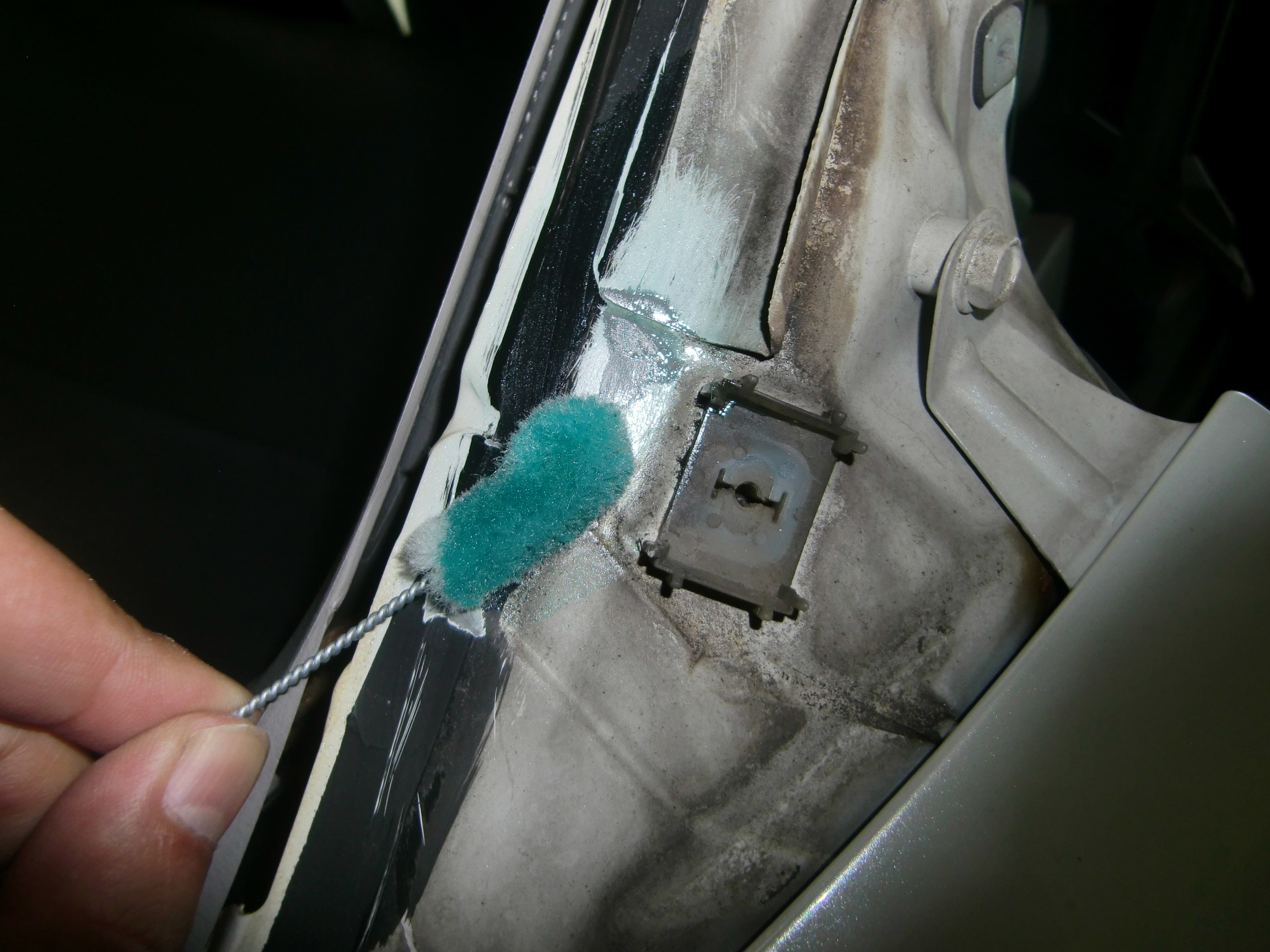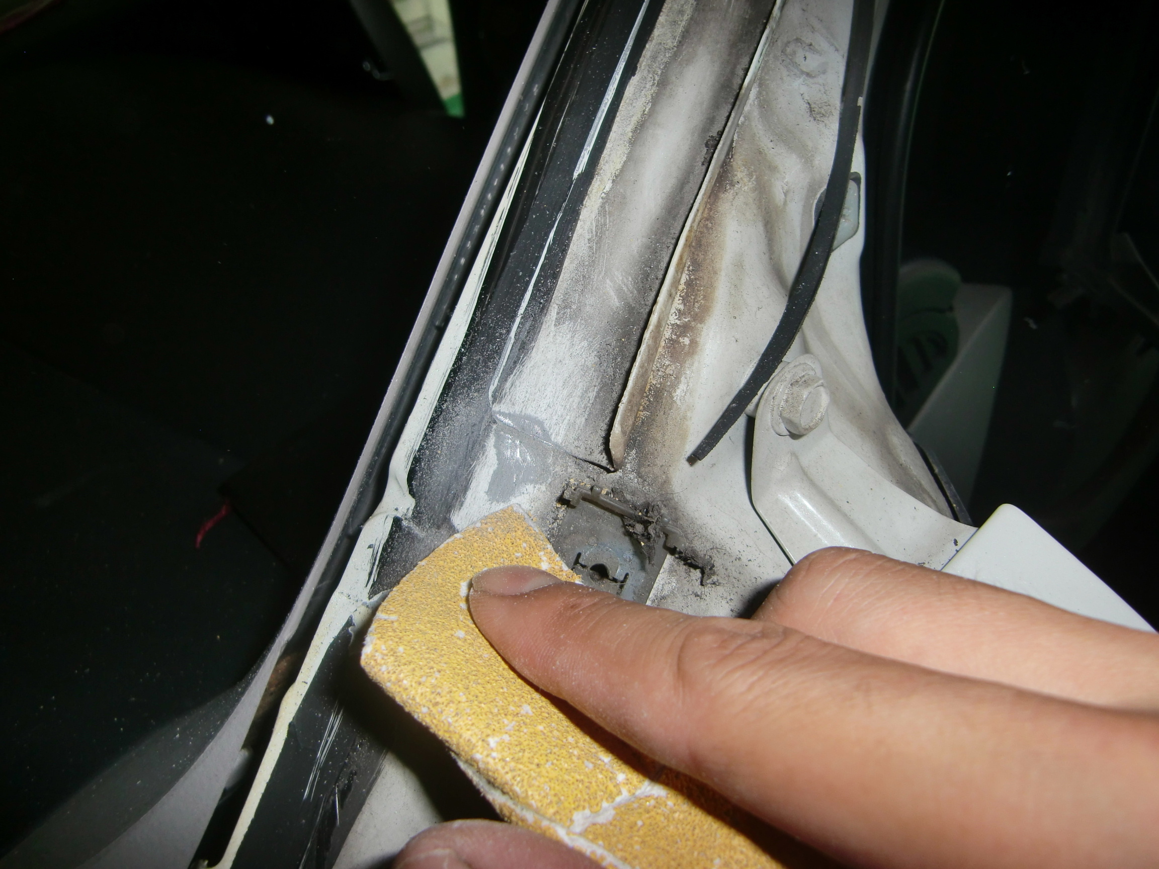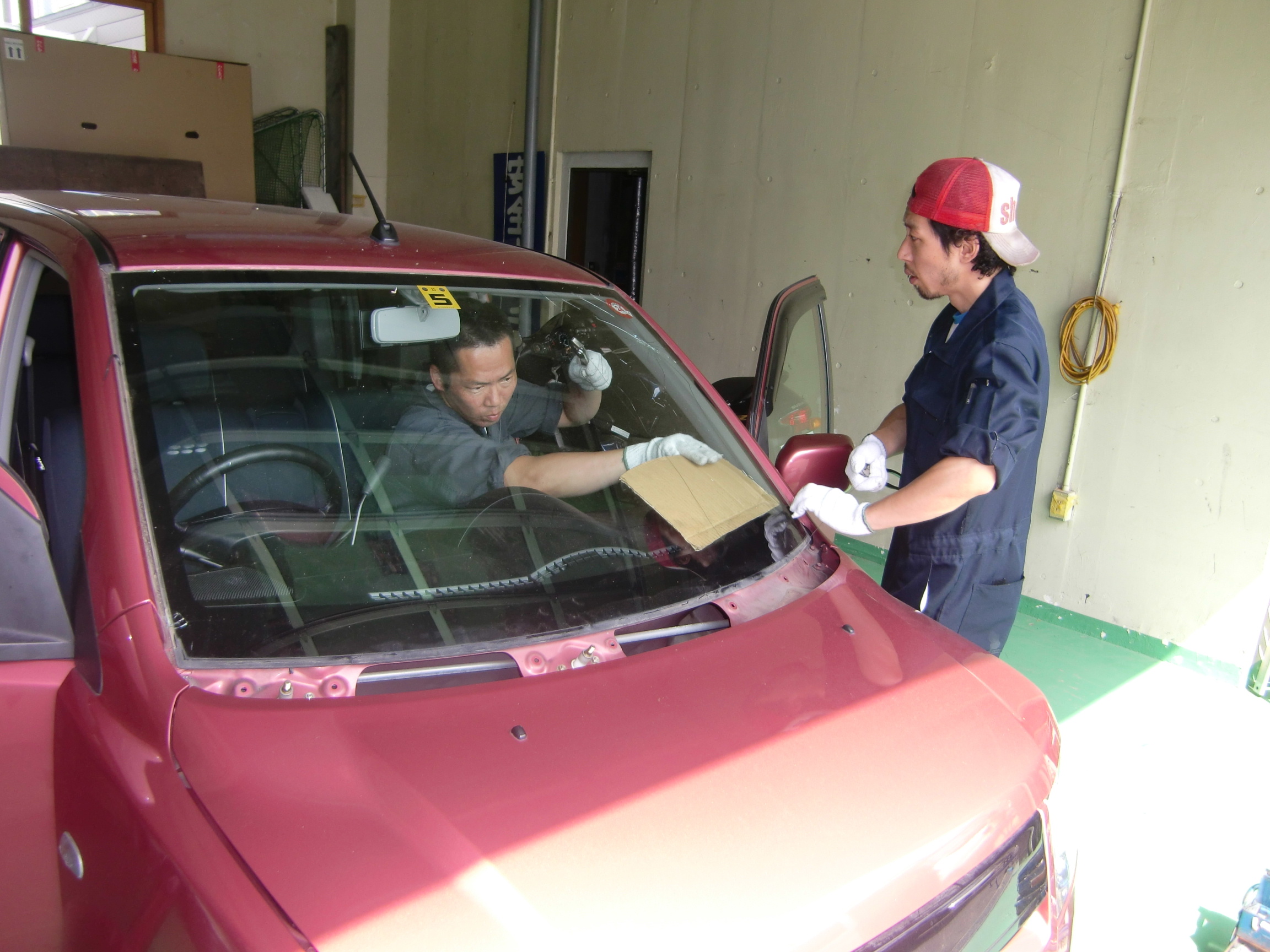 7)さび止めプライマー処理をして、新しいガラスを接着します。