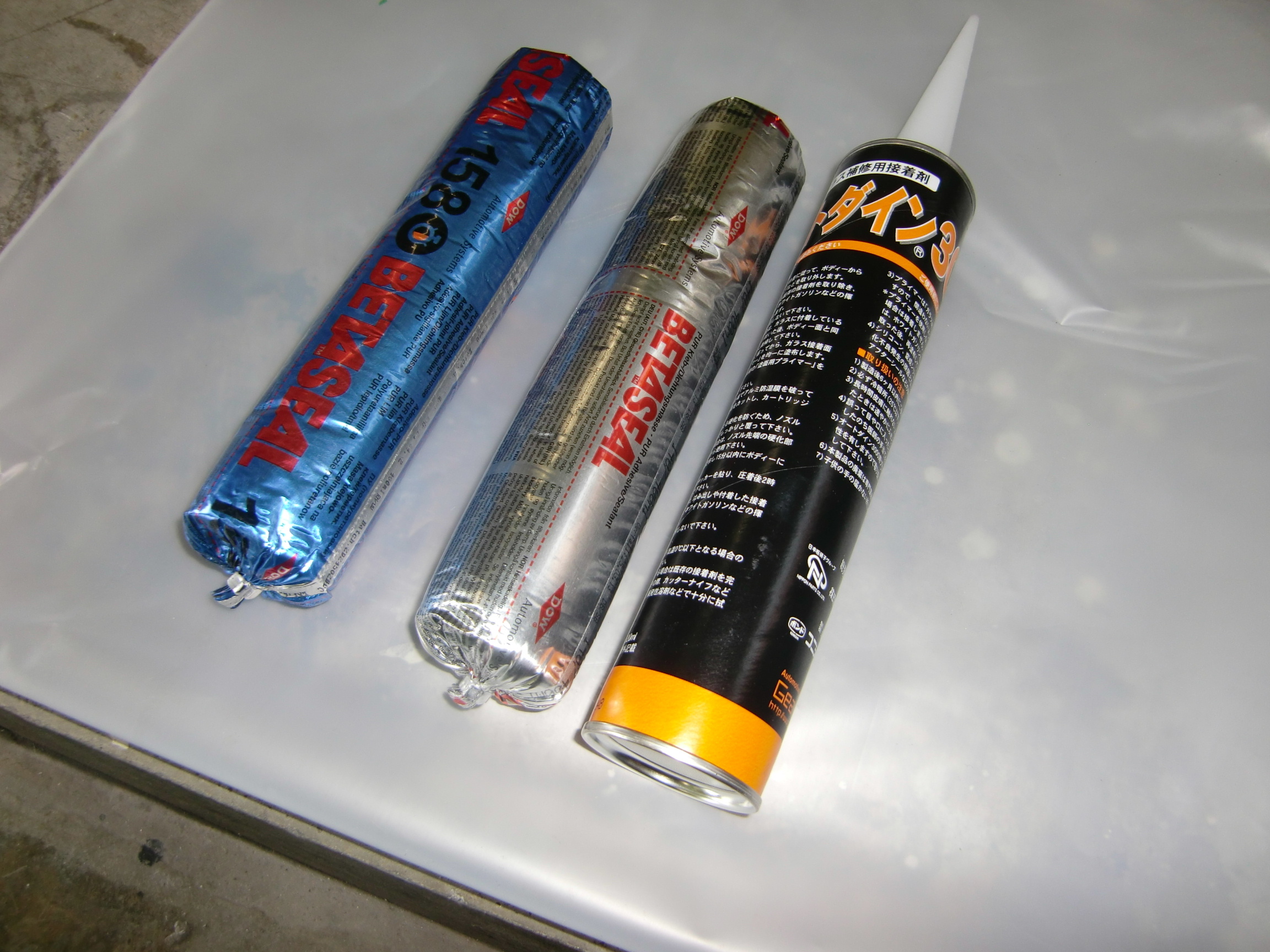 シーリング剤は用途に合わせて選びます。素材(ガラス・鉄・アクリル・特殊な塗料など)、速乾性・高粘度タイプなど
